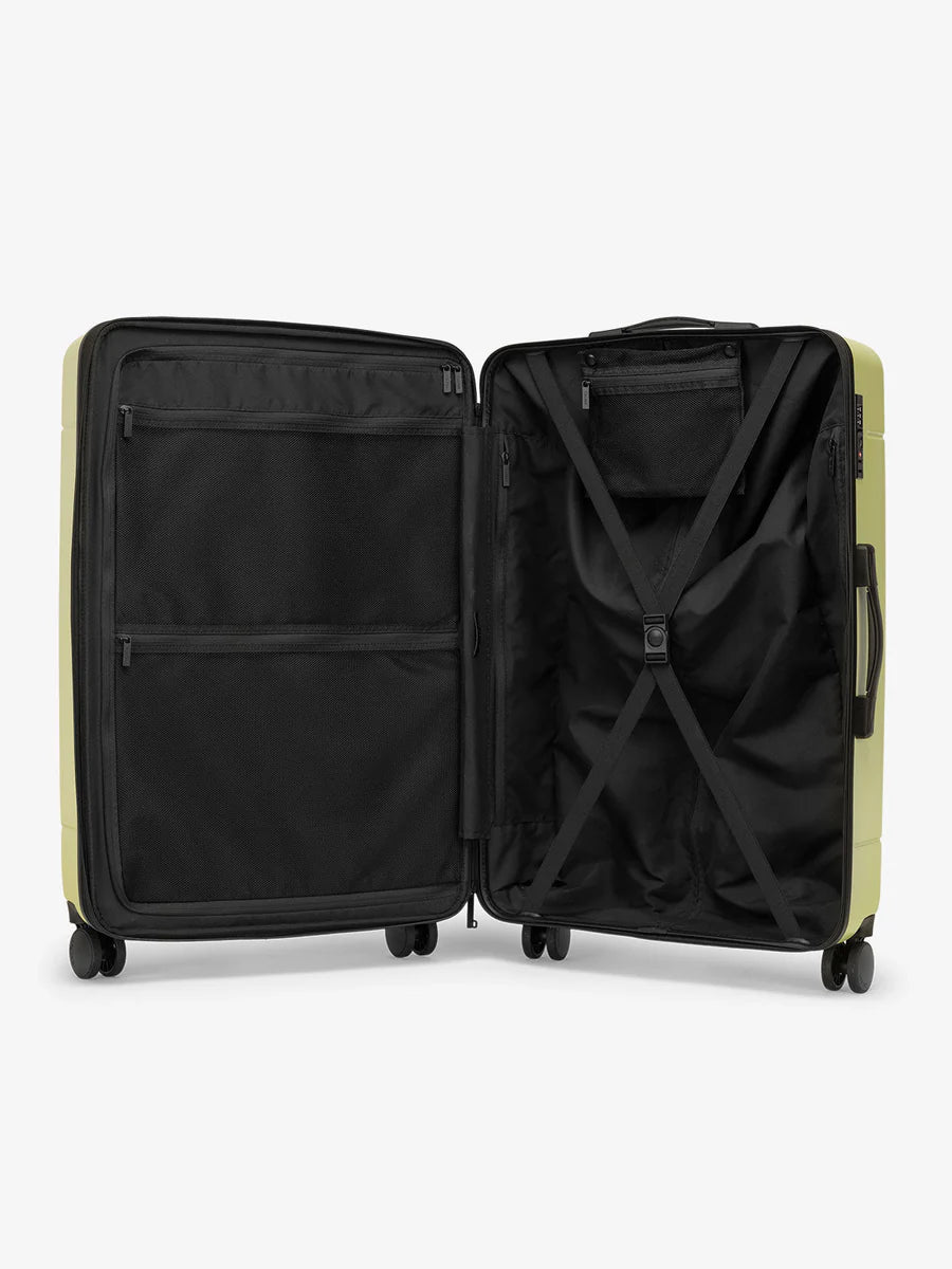 Searching for minimalist luggage? Look no further than Hue. Our large polycarbonate suitcase features four ultra-smooth spinner wheels for effortless navigation. With its sleek, modern design and expandable hardside construction, this piece will get you where you need to be in style.
