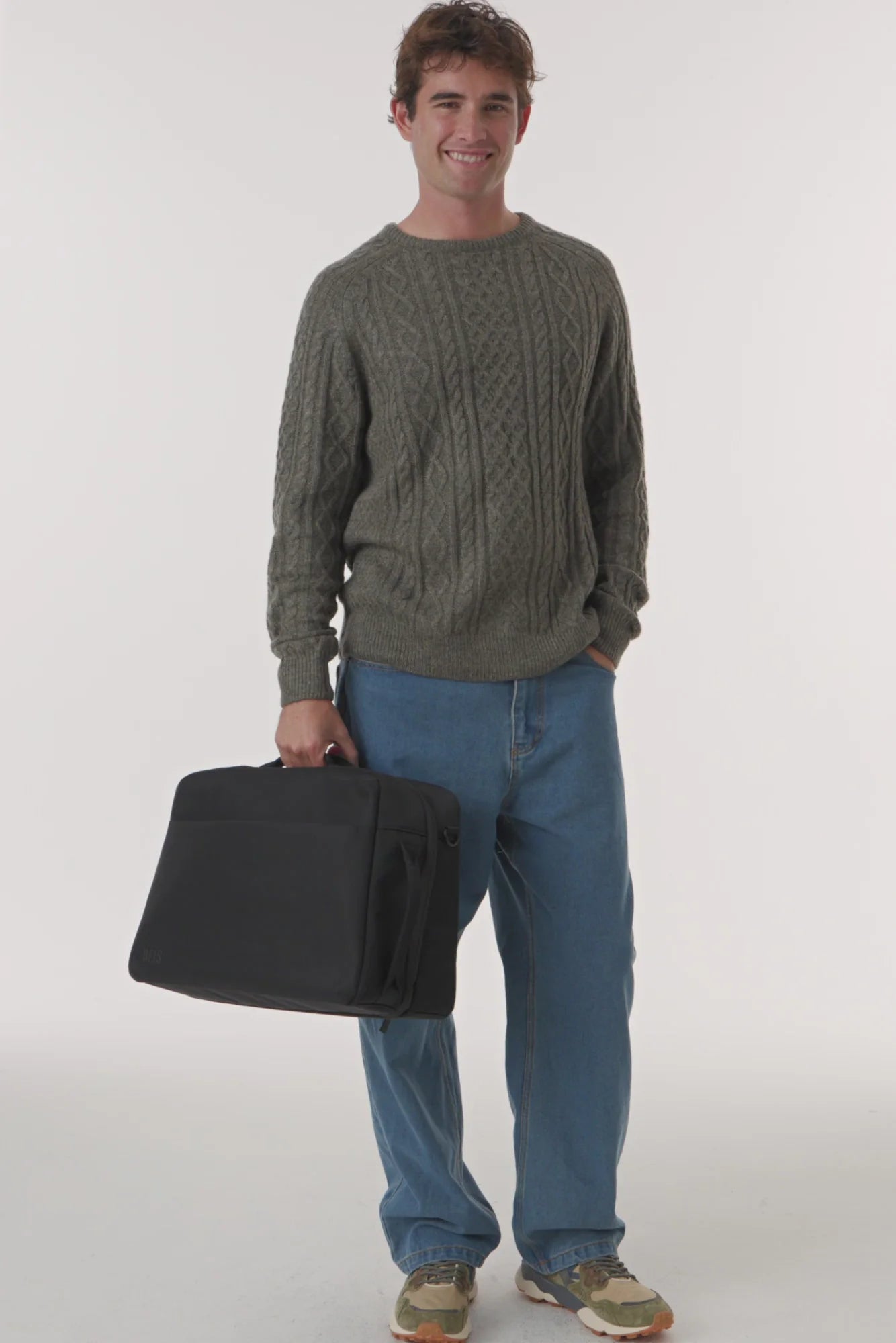 EXTERIOR: 3D Heat Transfer BEIS logo, Beis branded metal core zipper pullers, Removable & adjustable crossbody strap with padded shoulder pad, Big Clean recessed zipper pocket on front panel, 2 wrapped webbing handles on top, 1 wrapped webbing handle on each side (allows multiple grab points), Clam shell main opening, Clean trolley passthrough with zipper on bottom to covert into pocket. Hidden magnet to keep flat, Personal Item size compliant with all major US airlines.