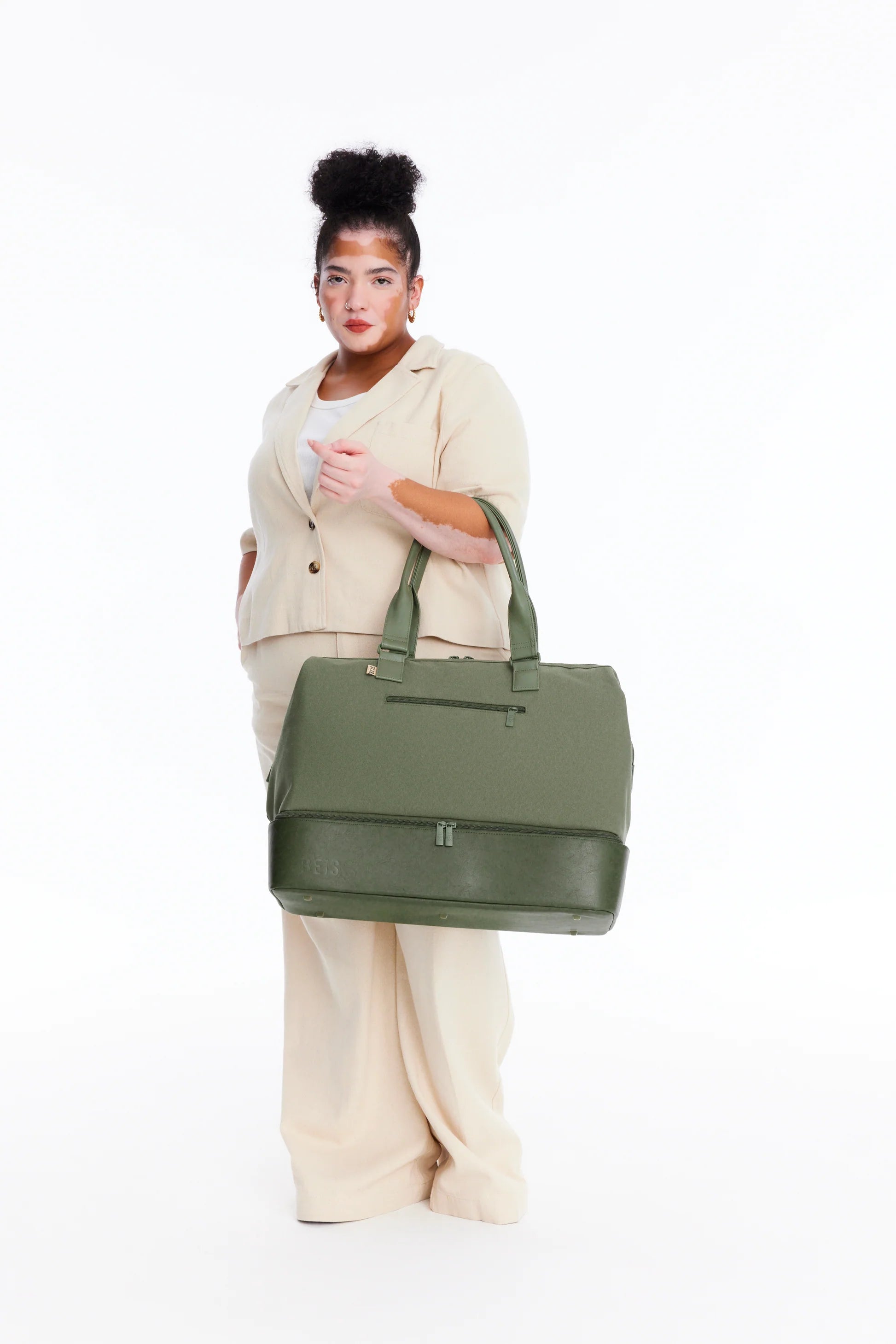 We designed this bag to take the hassle out of packing for the weekend or whichever days you’re away. Seriously, this tote’s easy-access opening makes getting everything in and out a breeze (no flashlight required). Plus, the bottom compartment is designed to keep your shoes, toiletries and travel essentials separate—you can even stash a hair dryer in there. Bonus points: there’s a zipper-pocket on the back that becomes a trolley sleeve so it fits over your luggage handle. Say Hello to your new favorite Carry-On Travel Bag.